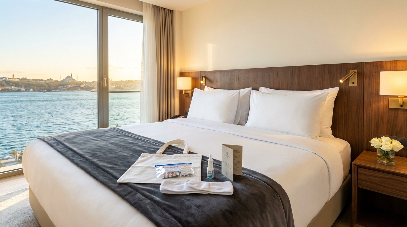 Le forfait inclut 3 nuits dans un hôtel 4 ou 5 étoiles à Istanbul, sélectionné pour sa qualité et sa proximité avec la clinique. L'hébergement n'est pas un détail accessoire — c'est un élément central de votre confort post-opératoire. Après une intervention de 6 à 8 heures, vous avez besoin d'un environnement calme, confortable et accessible.