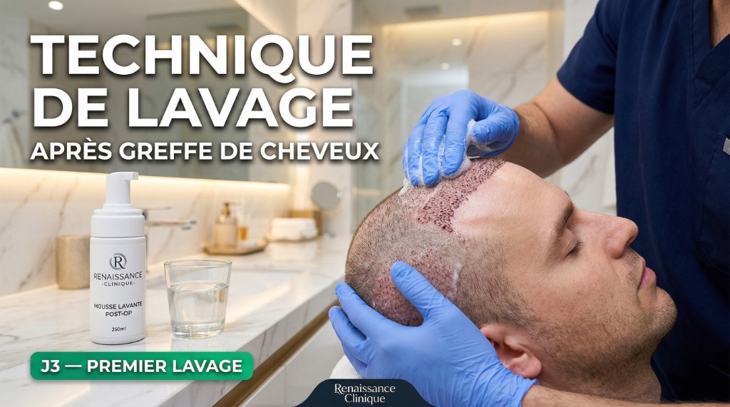 Le premier lavage, réalisé entre 48 et 72 heures après l'intervention, est l'étape la plus délicate du parcours post-opératoire. Il s'effectue en trois temps : application d'une mousse adoucissante sur la zone greffée pendant 15 à 20 minutes, rinçage doux avec de l'eau tiède versée depuis un gobelet, puis séchage par tapotement léger avec une serviette en microfibre. Ce rituel est répété quotidiennement pendant 10 à 14 jours jusqu'à l'élimination complète des croûtes.